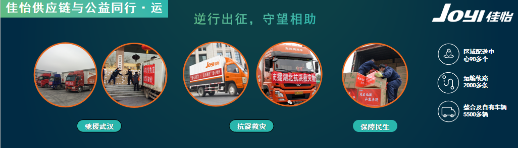 佳怡作為物流與供應鏈企業(yè),掌握了全國大量的運力資源,在武漢疫情爆發(fā)后,抗疫前線缺少醫(yī)療物資,同時面臨各地支援物資運輸難的困境,佳怡集團聚群力,謀對策,第一時間規(guī)劃運輸路線,自大年初三就開通了向武漢運輸救援物資的綠色通道,免費承接社會上各類企業(yè)、組織的防控物資、民生用品等運輸需求,并及時落實車輛資源,認真做好司機和車輛的防護、消殺工作,保障了近千噸救援物資的安全抵達,搭筑起了一道道抗疫物流生命線,展示了物流業(yè)在國家大難面前應有的責任與擔當。