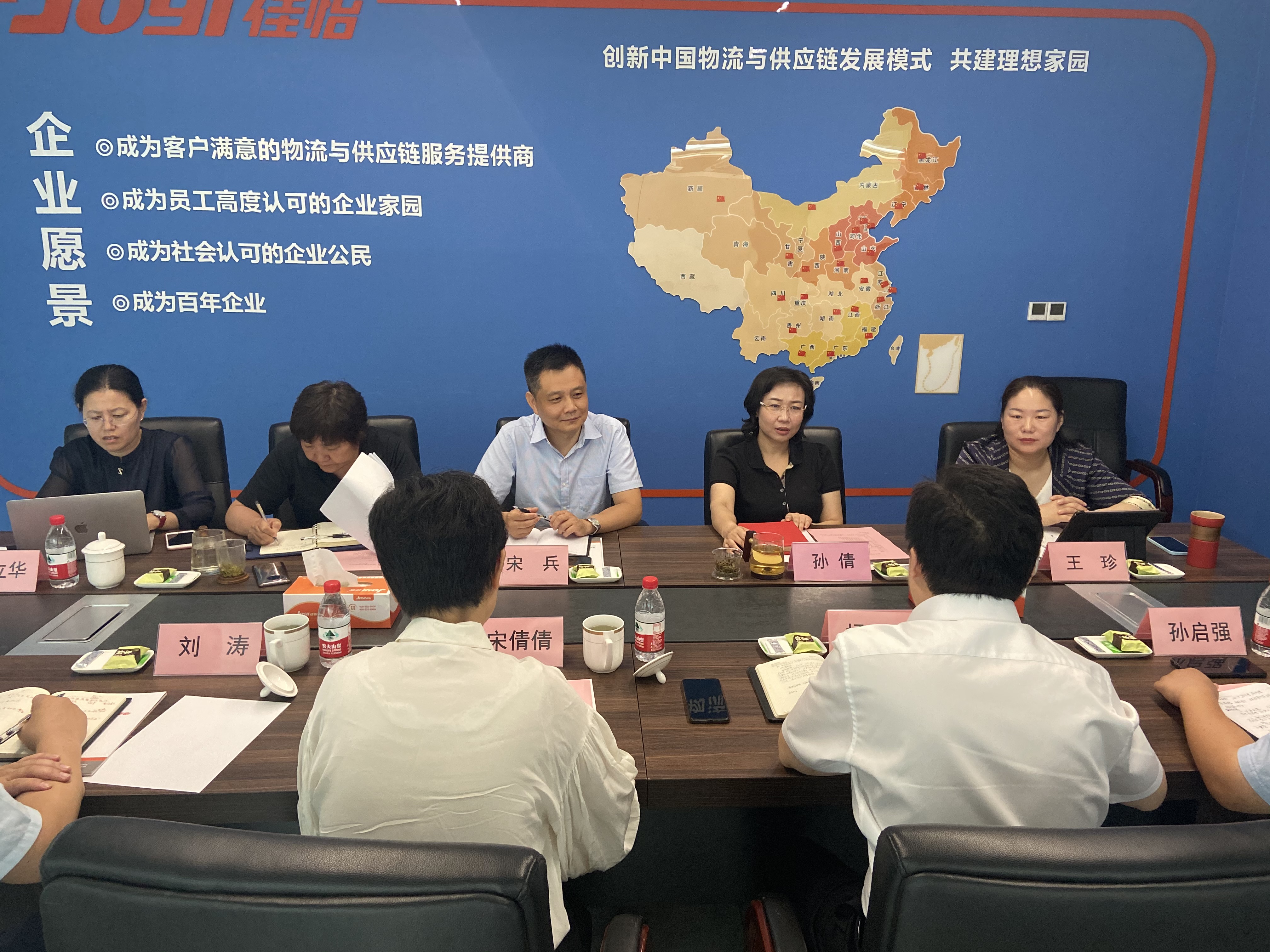 座談會上,孫倩董事長代表佳怡對各位領(lǐng)導(dǎo)的到來表示熱烈的歡迎,并詳細(xì)介紹了佳怡22年以來的發(fā)展情況、企業(yè)文化和具體產(chǎn)品業(yè)務(wù),重點(diǎn)介紹了佳怡物流與供應(yīng)鏈一體化發(fā)展模式以及佳怡在多式聯(lián)運(yùn)方面的打算和做法,圍繞佳怡供應(yīng)鏈業(yè)務(wù)優(yōu)勢和發(fā)展規(guī)劃與來訪領(lǐng)導(dǎo)進(jìn)行了深入交流。