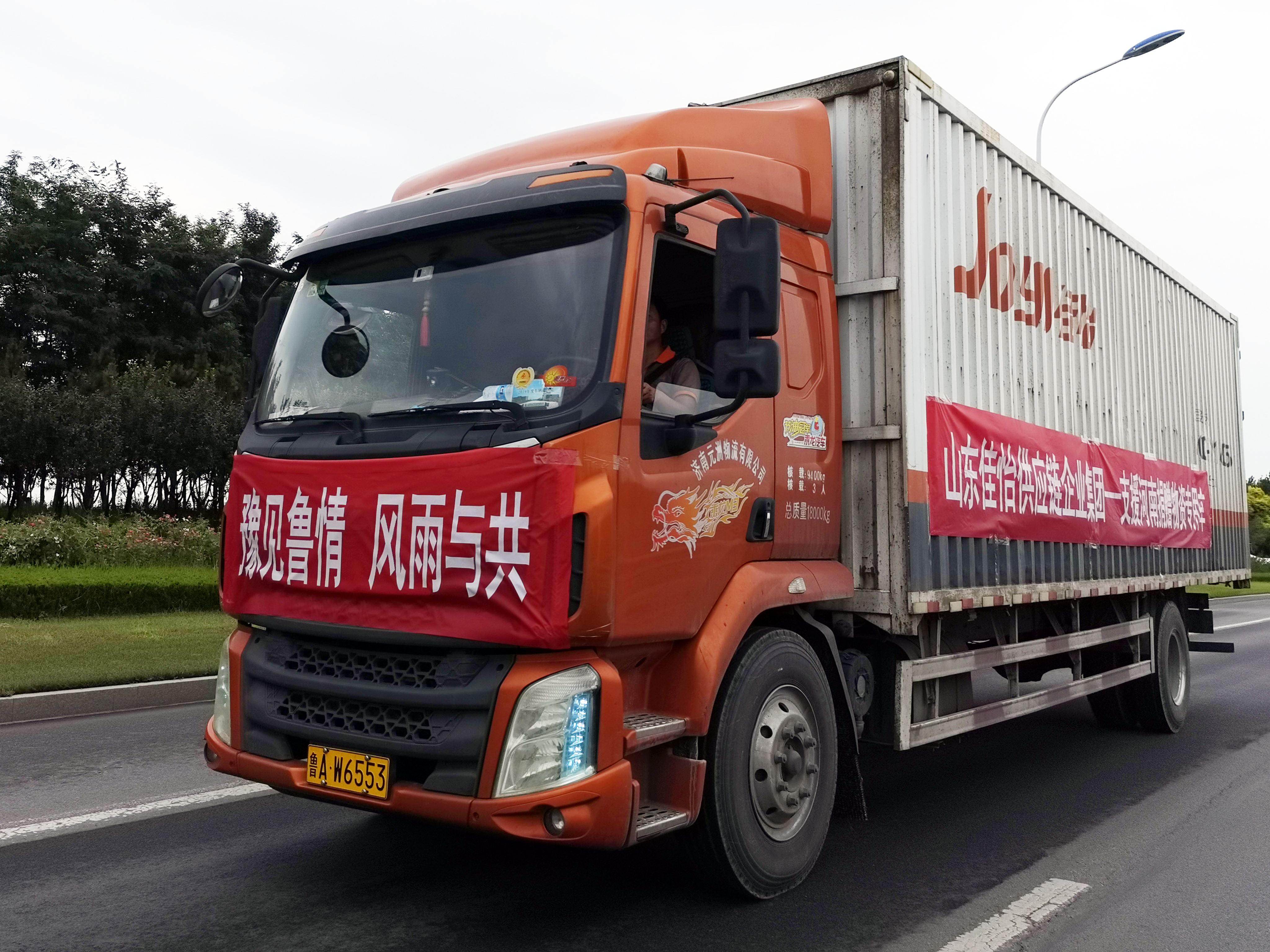 7月25日晚,由佳怡義務(wù)承運(yùn)的滿載宏濟(jì)堂制藥藿香正氣水、復(fù)方西羚解毒膠囊等防疫藥品和力諾瑞特太陽能熱水器、帳篷等救災(zāi)物資的大型貨車,從力諾智慧園出發(fā)駛向河南,日夜兼程、風(fēng)雨無阻,26日下午,救災(zāi)物資安全送達(dá)鄭州市、周口市、新鄉(xiāng)市,用于災(zāi)區(qū)救援、防疫、重建家園工作,為災(zāi)區(qū)人們送去健康和愛心。