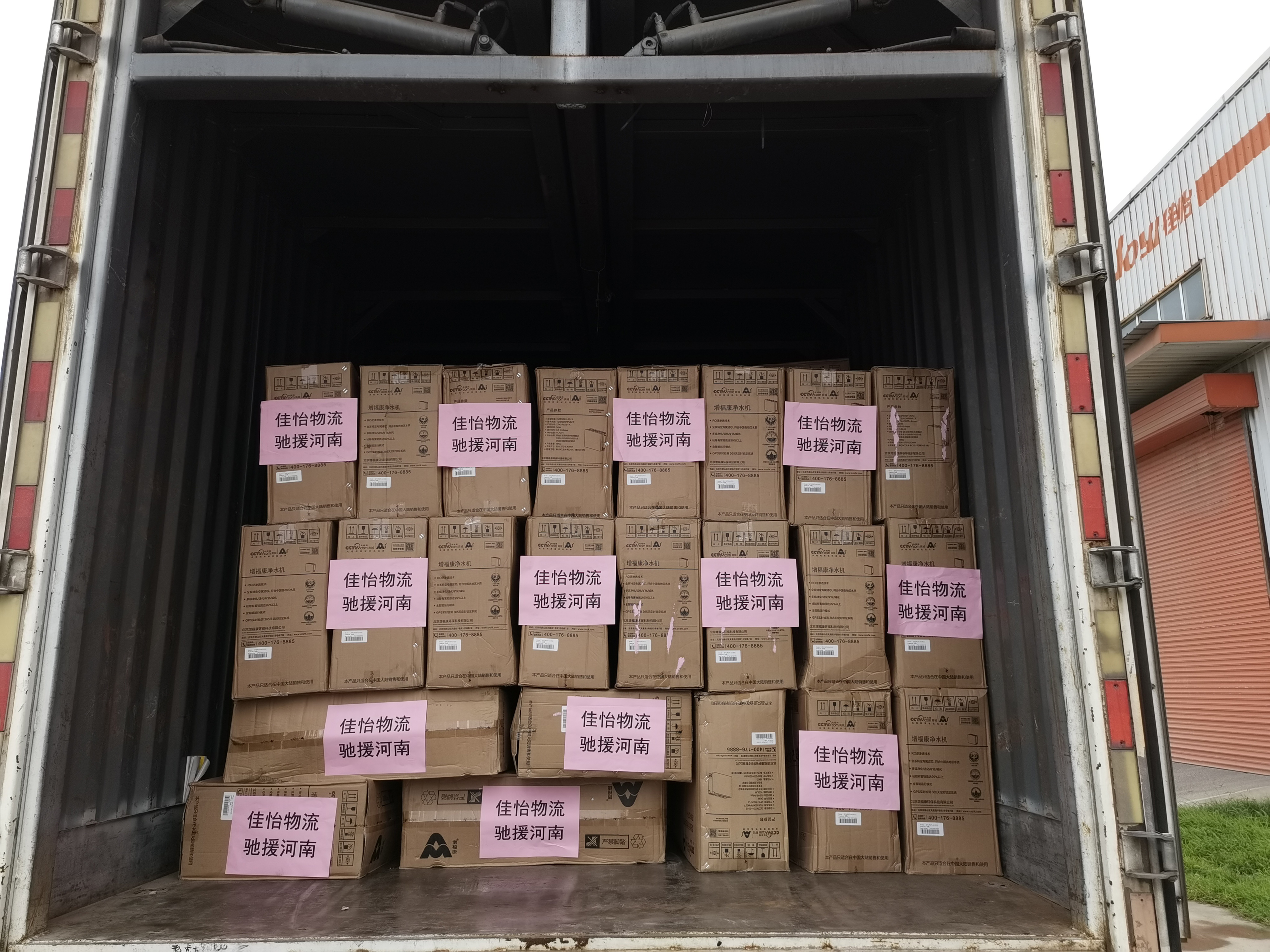 7月27日21時(shí),佳怡向河南災(zāi)區(qū)捐助了價(jià)值近15萬元的凈水設(shè)備,運(yùn)輸車輛從佳怡魯北電商產(chǎn)業(yè)園連夜出發(fā),于28日凌晨3點(diǎn)送達(dá)河南鄭州,將用于河南同胞們?yōu)暮笾亟覉@。