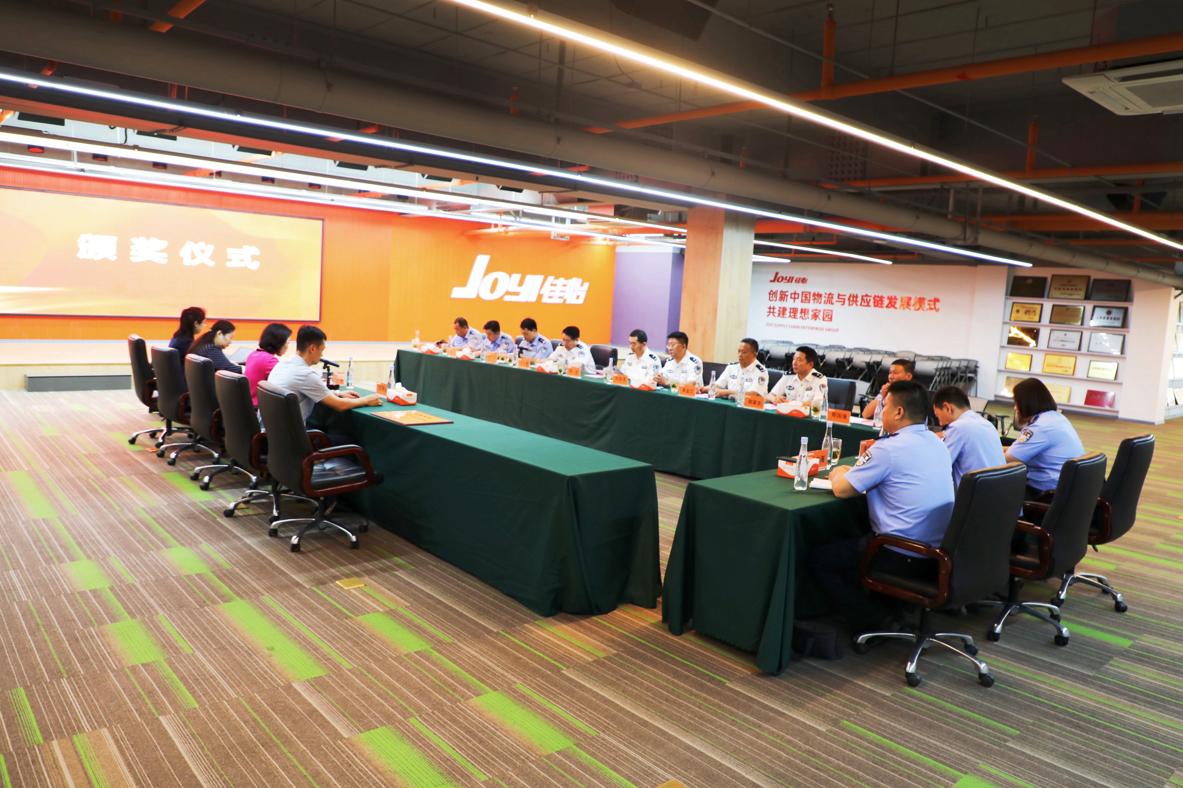 日前,佳怡集團(tuán)獲得濟(jì)南市公安局頒發(fā)的“2021年度四星級(jí)平安單位”榮譽(yù)獎(jiǎng)項(xiàng)。同時(shí),集團(tuán)副董事長(zhǎng)王珍獲得“2021年度單位內(nèi)部治安保衛(wèi)工作個(gè)人三等功”榮譽(yù)獎(jiǎng)項(xiàng)。7月21日,濟(jì)南市公安局副政委鄭宏、濟(jì)南市公安局一級(jí)高級(jí)警長(zhǎng)劉西茂、歷城區(qū)公安分局政委王志棟、物流寄遞犯罪偵查支隊(duì)支隊(duì)長(zhǎng)單金文一行蒞臨佳怡供應(yīng)鏈企業(yè)集團(tuán)調(diào)研并頒獎(jiǎng)。集團(tuán)董事長(zhǎng)孫倩、副董事長(zhǎng)王珍、辦公室總監(jiān)宋明遠(yuǎn)等陪同。