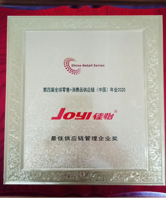 近日,由Shine Retail Institution(士研零售研究院)主辦的“第四屆全球零售+消費品供應(yīng)鏈(中國)年會2020”在上海召開。本次峰會以“升級賽道,協(xié)同創(chuàng)新,零售新業(yè)態(tài),重塑供應(yīng)鏈”為主題,深度探討零售業(yè)變革、融合、共享與發(fā)展,不斷創(chuàng)新,合作共贏,推動消費轉(zhuǎn)型升級。會上還舉辦了零售大賞“金鏈獎”頒獎典禮,佳怡供應(yīng)鏈企業(yè)集團旗下的浙江佳怡供應(yīng)鏈管理有限公司獲得“最佳供應(yīng)鏈管理企業(yè)”榮譽。