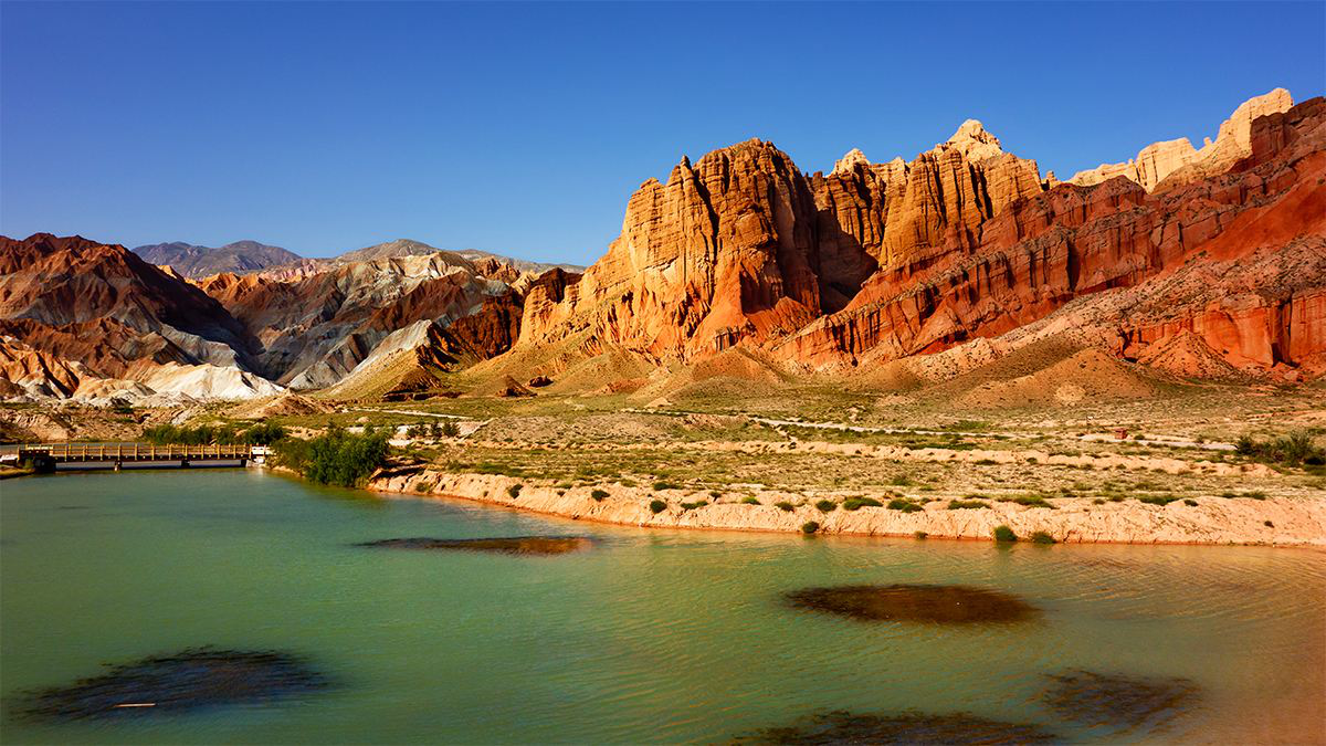 “南星變大火,熱氣馀丹霞”——來自唐代詩仙李白《早秋贈裴十七仲堪》中有名的詩句,直到我們見到了貴德丹霞地貌,步入其中,身臨其境,不得不感概大自然的鬼斧神工,把這一處地貌塑造的如此奇妙!不僅色彩紛呈、形態(tài)各異,還流水如玉,潭靜如鏡,倒影天成,可謂美不勝收。