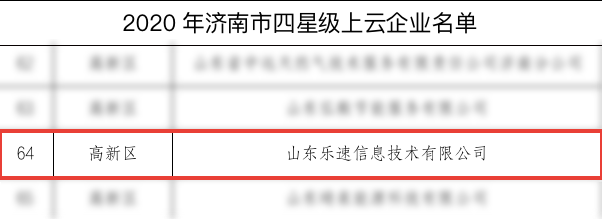 為貫徹落實(shí)《濟(jì)南市工業(yè)互聯(lián)網(wǎng)創(chuàng)新發(fā)展行動(dòng)計(jì)劃(2020-2022年)》以及相關(guān)文件精神,加快推進(jìn)我市企業(yè)上云,幫助企業(yè)數(shù)字化轉(zhuǎn)型。濟(jì)南市工業(yè)和信息化局組織了2020年度市星級(jí)上云企業(yè)評(píng)級(jí)工作。佳怡旗下山東樂速信息技術(shù)有限公司獲評(píng)2020年度市級(jí)四星級(jí)上云企業(yè),是繼2017年獲得上云企業(yè)標(biāo)桿后再獲殊榮。
